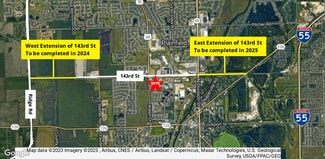 Multiple lots for sale, lease, or build-to-suit. Diageo/Seefried Project: 1. Nearly 1.5 million SF Diageo building under roof to the west 2. Diageo/Seefried project will bring in 450-500 employees initially   Over 2,230 Residential Units in Process in the Area: 1.  Sixteen30 Apartments (284 units) under construction 2. Greenbrier development along Steiner, south 143rd St. - 238 Single family homes  3. Willow Tree Farm (K Hovnanian Homes) - SEC Drauden and Lockport approved for single family homes 4. Townhouse rental development application received for SEC 143rd & Steiner East extension of 143rd connecting to I-55 - construction starts in 2024 to be completed in 2025 West extension of 143rd to Ridge Rd to be completed in 2024