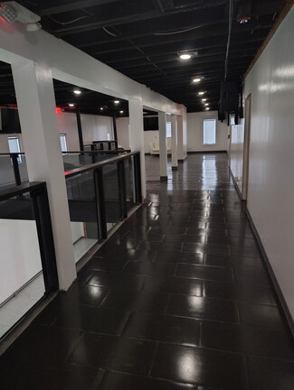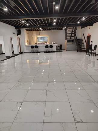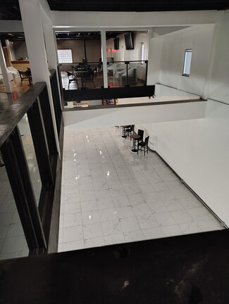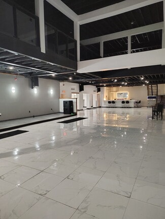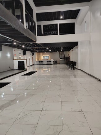 Step into a stunning, modern event space designed to impress. This expansive open-concept interior features sleek, high-gloss tile flooring, soaring ceilings, and a dramatic mezzanine level that overlooks the main floor—perfect for hosting large gatherings, private events, or upscale business functions.