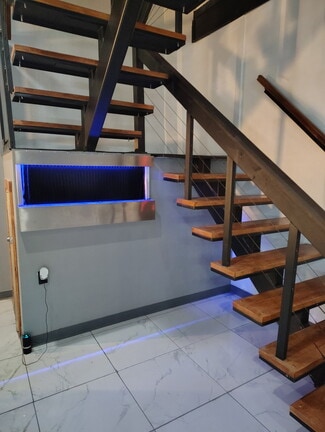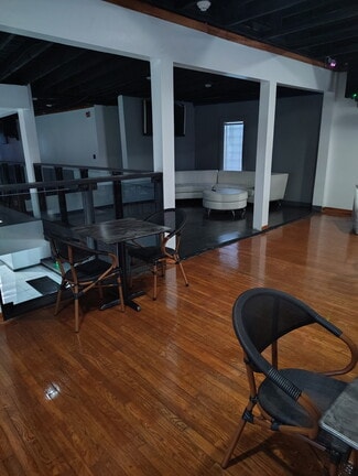 The main level offers a spacious, versatile layout with a built-in bar area, ambient lighting, and a designated stage or DJ setup, creating the ideal atmosphere for entertainment. Clean architectural lines, neutral tones, and contemporary finishes provide a blank canvas ready to match any vision or brand.
