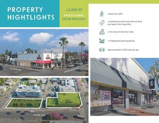 +/- 3,200 SF of prime retail space on Ventura Blvd in Sherman Oaks. Lots of foot traffic, 13 designated rear-parking spaces available.