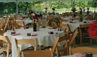 Event capacity exceeds 2,000 guests, supported by expansive lawns, generous parking, covered pavilions, a concrete patio overlooking the 1-acre pond, and a 3,200-sf pad suitable for additional structures.