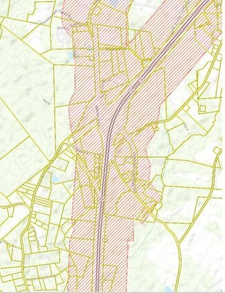 Located on cul-de-sac exit ramp, water and sewer are both at the parcel's doorstep. Plenty of capacity for nearly any commercial operation, site will likely require a pump to bring sewage to the force main at the top of the ridge. Highway Business overlay district zoning allows for near any commercial development. Residence on the parcel conveys at no value.