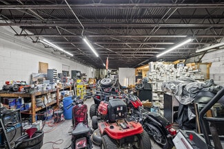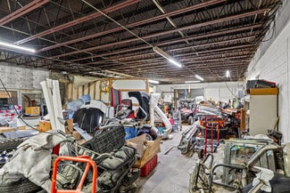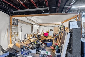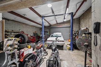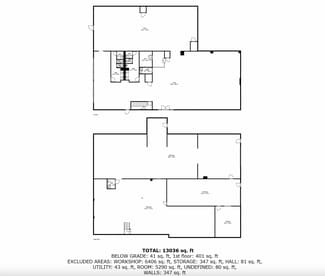 The downstairs provides 7,400+ SF with two large bay doors that can be reopened for drive-in access. This level includes a hydraulic car lift, an office, a restroom, and extensive storage or warehouse capacity, making it well-suited for automotive, trades, flex, or distribution users.