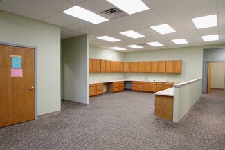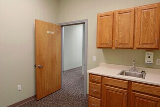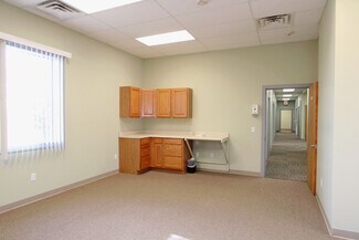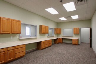 Large space perfect for medical, dental, or multi-office space needs. Enter out of the weather into a covered entrance. Step into the large reception area that includes a bathroom with public access. There are two reception windows and a divided wall for workstation privacy. The large activity workstation space is perfect for files, billing, or general office workings. An additional large work station space for medical staff or conference area is adjacent to the general office staff space. There is a separate kitchen and lounge area as well as 11 exam or office spaces, a lab room or convert to an additional supplies room. There is a large space for physical therapy or activity room. Multiple client parking spaces View floor plan attached
