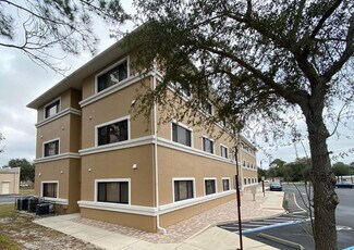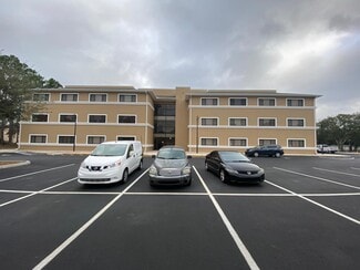 Welcome to 1490 Sunshadow Drive, a professionally maintained office building offering well-appointed suites ideal for small to mid-sized businesses. Each suite features a spacious reception area that welcomes visitors and clients, creating a polished first impression upon entry. The typical layout includes three individual offices and a dedicated conference room, providing ample private workspace and a collaborative area for meetings, presentations, or team discussions. A convenient kitchen area with cabinetry is included in every unit, offering space for meal prep, storage, and daily employee use.