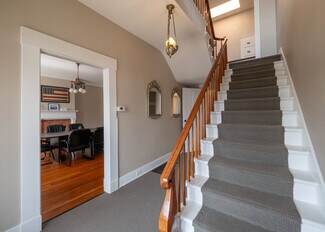 Elford Realty is proud to present this charming two-story office building located in the heart of the Historic District of Delaware. Built in 1821, this property blends timeless character with functional office space, making it ideal for general office use. The building offers both front and rear entries and includes an attached surface parking lot with ample space for staff and visitors. The first floor features two welcoming reception areas, a break room with kitchenette, a spacious porch, two conference rooms, and a restroom. Upstairs, you'll find four private offices and an additional restroom. Conveniently situated between State Routes 36 and 37, and just minutes from SR-23 and Ohio Wesleyan University, this location offers both accessibility and historic charm.