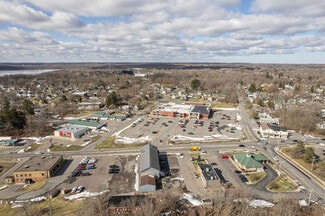 Outstanding opportunity, large building situated on 1.1 acre lot along heavily trafficked W 1st St (State Route 48) in Fulton. Building and/or lot could serve a variety of uses. Currently set up with first level as retail and/or office space at front with warehouse space (2 levels of warehouse space) and 5 overhead doors in back. Upper level features one residential apartment currently. There is also a separate detached 5 bay garage that is leased out, generating additional revenue. Fulton, NY is situated only 15 miles north of the Town of Clay where Micron has announced and broken ground on an up to $100 billion investment. Property is situated in high traffic area, adjacent to a Dunkin' Donuts and directly across from a Price Chopper supermarket. State Route 48 is a heavily trafficked road running north and south through Fulton - serving as a thoroughfare between Oswego and Syracuse. Also listed as MLS# S1668527 and S1668528.