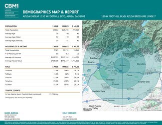Former Chase bank location in corner retail strip center. +/- 1,455 SF space suitable for retail or office users. Property features co-tenancy with i-Massage MediSpa, high street visibility on heavily trafficked intersection, ample parking in onsite lot with +/- 22 spaces, convenient access from both cross streets, and monument signage opportunity. Prime location in the heart of Downtown Azusa at the major signalized intersection of Foothill Boulevard + San Gabriel Avenue. The well-located site is close to Azusa City Hall & Police Department, the Orchard mixed-use project, Azusa Pacific University West Campus (10,020 Students), Citrus College (12,002 Students), and the Felix Event Center (3,500 Seat Facility).