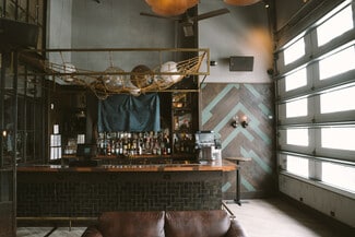 The property offers versatility with the option to create a combination of experiences for patrons. There is a restaurant area including seating, a bar, and room for a dance floor; a street facing area with roll up windows with a second bar and seating that can be used as a cafe in the day time; and an upstairs area with a third bar, that can take overflow from the ground floor or be used as a “speakeasy” for intimate private events.