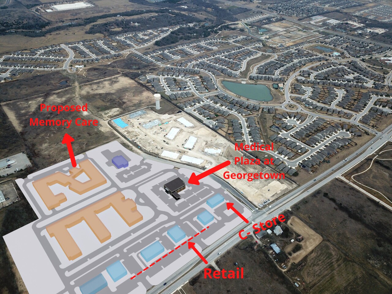 Medical Plaza at Georgetown is a 36,000-square-foot medical office building on Westinghouse Road in Georgetown, Texas. Set to begin construction in 2021, Medical Plaza at Georgetown will be a specialty medical office building on a strategically located 3.09-acre site. The modern facility boasts a natural stone and stucco façade with unique architectural accents and a covered entry. Anchored by one of Austin's leading family practices, businesses can create synergy with a dynamic tenant mix and custom-designed suites with high-end finishes.