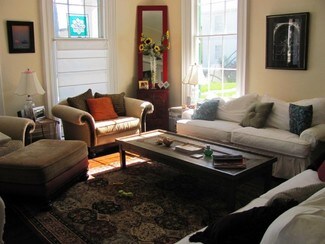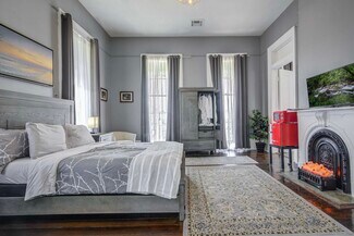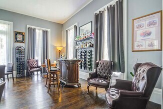 Anchoring the estate is the 1868 Edward T. Austin House, showcasing original frescoes and five elegantly appointed suites. Meticulously renovated in 2021, this centerpiece now operates as an award-winning bed and breakfast, offering six bedrooms, five full baths, three half baths, and event-ready grounds equipped with marquees - perfect for intimate gatherings and celebrations.
