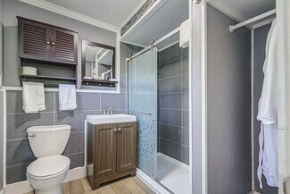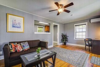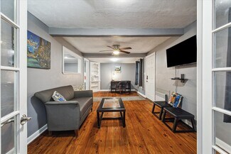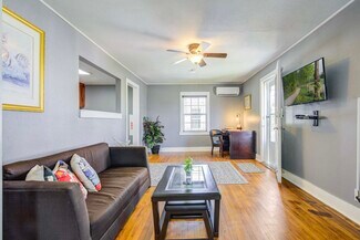 Complementing the main residence is a multifamily complex consisting of four one-bedroom, one-bathroom units spread across two charming structures. Together, these units offer approximately 3,200 square feet of living space, featuring classic wood finishes, functional layouts, and access to public utilities and street parking.