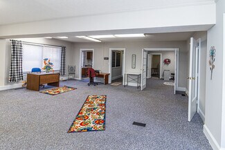 Well-maintained stand-alone brick office building featuring nine private offices and a large reception area ideal for professional, medical, or administrative use. The property offers on-site parking with a small rear parking lit plus two front parking spaces, all accessible via a shared driveway for easy ingress and egress. Solid brick construction, efficient layout, and strong street presence make this a versatile space ready for immediate occupancy. Perfect for businesses seeking a private, self-contained office setting in a convenient location.