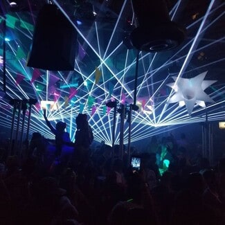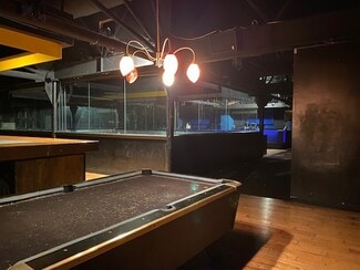 The two-story layout provides a flexible configuration suitable for various commercial uses. The ground floor includes a main open area with a stage, multiple bar areas, and restrooms. The second floor offers additional bar space, with interior glass walls overlooking the main floor below. A full-length balcony on the second level faces 7th Avenue, providing direct views of the street and reinforcing the building’s connection to the surrounding activity.