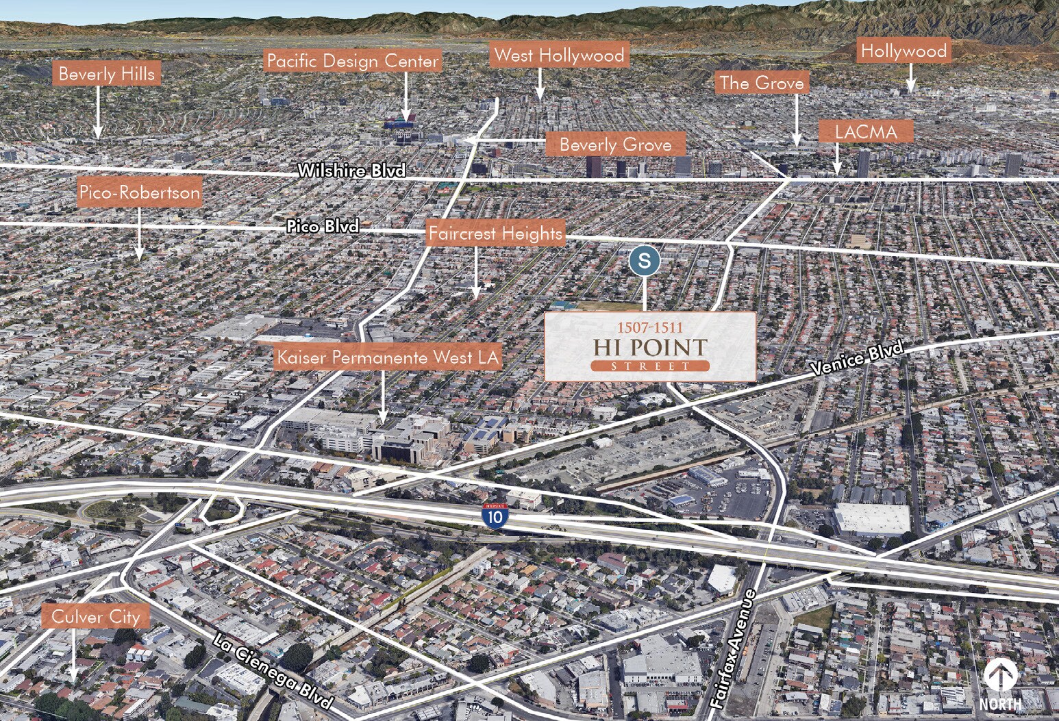1507-1511 Hi Point is located within minutes to Beverly Hills, in the Faircrest Heights neighborhood of Los Angeles, just west of Fairfax Avenue. The site is located within one-and-a-quarter miles from the planned Metro Purple Line at Wilshire/Fairfax, currently under construction and slated for 2023 completion. With a Walkscore of 86, the neighborhood is considered "very walkable" with a variety of neighborhood restaurants and coffee shops, as well as a Trader Joe's and Whole Foods nearby. Beverly Hills, Century City, Downtown Culver City, The Grove lifestyle shopping center, the Beverly Center, and the trendy Larchmont area, are within a short distance of the site. The site is also conveniently situated approximately one mile north of Interstate 10, with connection to Interstate 405, providing convenient access to abundant employment opportunities throughout Greater Los Angeles.