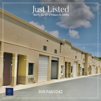 For Lease Warehouse Located off 136 street Near Kendall Units From 1162 Sq Ft A/C 1 Private Offices in unit (1) Restrooms in unit 18 ft Clear Ceiling Height, 2 parking spaces per Units, 2007 Year Built, Reinforced Concrete Block and Stucco Construction individual bays One (1) Street Level Doors each unit. *NO Body Shops or Mechanic Business For Lease 1162 Sq Ft $2700.00 per month