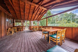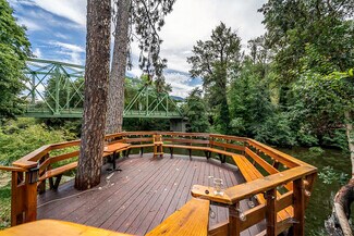 Music, dancing & dinner on the River! Welcome to the Applegate River Lodge & Restaurant! A Southern Oregon favorite destination, the Lodge has been serving patrons for the past 28 years. Situated on 3.06 prime riverfront commercially zoned acres, at the foot of the 1934 built National Historic Pioneer Bridge, the Lodge offers overnight accommodations with 7 sizable river view suites. The Lodge features a large event great room with cathedral ceilings, upper mezzanine seating & 35' river rock fireplace, a full popular restaurant licensed with OLCC with interior dining & 3 spacious riverfront dining decks plus a full-service wedding venue with lovely manicured gardens. Typically, 40 weddings are hosted annually. Host reunions, yoga retreats, corporate meetings or riverfront accommodations. Loads of added potential for expanded hours & adding lunch & Sunday brunch. Run as an inn, restaurant & event center or as an inn, wedding & event venue & lease restaurant at $3000 to $4000 monthly. Total Sf of Lodge and Restaurant is 9,402.