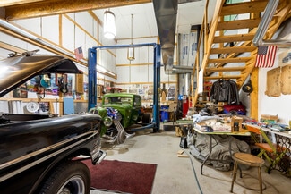 This is the ideal mechanic's garage—currently in use as one! Featuring three oversized garage doors, a man door, and soaring 16’–22’ ceilings. The space includes multiple storage areas on both levels, a loft/office perfect for business operations, and a wood-burning coal stove with new ductwork. Built-in commercial-grade car lift and I-beam construction, along with a chain hoist, allow for heavy lifting. Tool storage cabinets included—ready to go for your next project or business venture. All in a sought-after location and super convenient to I-79.