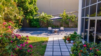 Two open lots on either side of the structure allows for an oasis of nature in the heart of a vibrant city. Just outside the walls of glass is and urban garden and patio to relax in.