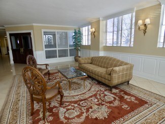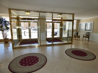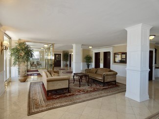 -  Select brass and glass double doors provide for a polished entry into the expansive lobby.