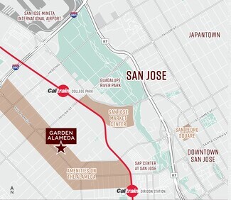 Garden Alameda is a six-building, ±150,000 SF office campus positioned along San Jose’s highly walkable Alameda corridor. The project delivers a professional, modern work environment with upgraded common areas, countless outdoor seating areas, and water features that create a serene campus feel. Tenants benefit from immediate access to a deep retail amenity base, short bike ride times to Diridon Station, and a strong mix of move-in ready suites ranging from ±577–±6,457 SF. Garden Alameda is ideal for teams prioritizing convenience, connectivity, and operational efficiency.