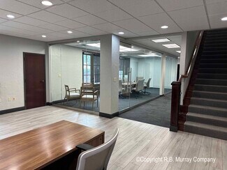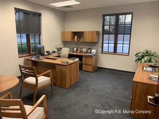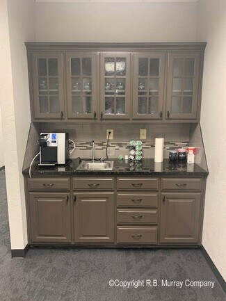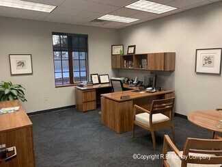 End-cap unit with windows throughout. It features large reception area with kitchenette, new full glass conference room, 13-14 large private offices, large kitchen / break room, and upstairs that is finished office and storage areas. Shown by appointment only. Please contact listing agent for additional information or to schedule a tour.