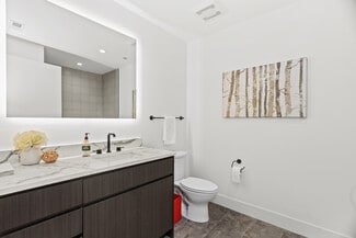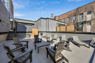 All apartments feature high, exposed timber ceilings, abundant natural light, luxurious and tasteful kitchen and bathroom finishes, in-unit laundry, and individual HVAC. Select units have private balconies or terraces. Common area amenities include, large fitness center, multi-level rooftop deck, storage lockers, package delivery system, and well-appointed lobby.