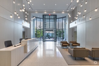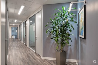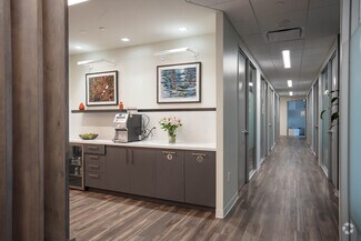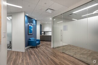 Suite 100 on the ground floor is conveniently located in the main lobby, offering an ideal setup and location with coworking amenities and flexible, short-term lease commitments. The welcoming reception area features a sleek, modern reception area for greeting clients and guests. There is no security deposit, no long-term lease requirement, and a simple, straightforward leasing agreement and onboarding process. This well-designed suite features nine private offices and expansive glass windows allowing abundant natural light. The suite can be customized to accommodate professional business needs and accommodations. Suite 100 is ideal for a therapist, practitioner, or client-facing business professional.