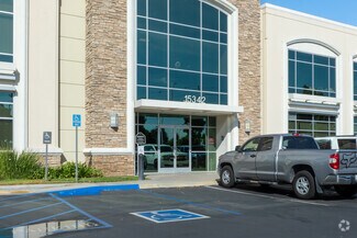 An office building nestled in a commercial landscape.