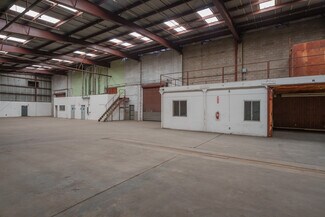The 24,000 square foot building is ideally operated by a single user but is currently configured into two 12,000 square foot spaces, with one side vacant and the other side vacating within the next couple months. The interior consists of two open rooms with small office buildouts, restrooms and mezzanine storage areas. There are 4 overhead roll up doors and interior eave height of 23’. The building is fire sprinklered and one side of the building has an overhead bridge crane.