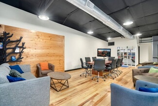 • Flexible layout with offices, open work area, and mezzanine conference room