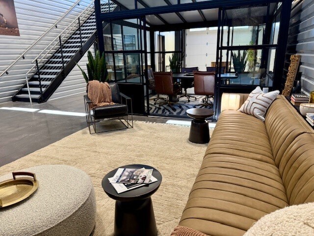 HVAC, automatic door, restroom, 3 phase power, mezzanine, polished concrete flooring, galvalume walls, juliette balcony
