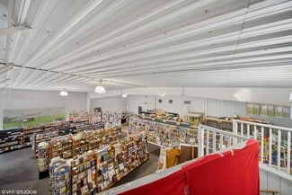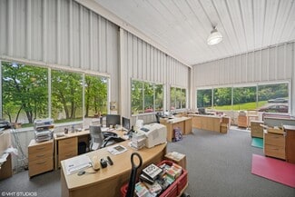 High-Visibility Mixed-Use/Lite-Industrial Property with Rare River Frontage. Unlock the potential of this 10,233 sq ft mixed-use commercial property spanning two joined buildings on 6.89 acres across three parcels. Designed for flexibility, the main building offers a 19' ceiling showroom, six private offices, bathroom, 24x 60 mezzanine, and a 16' high overhead door; ideal for a restaurant, showroom or office. The second building features a concrete floor, bathroom, 21' ceilings, and a 14 wide x 19 high overhead door, making it well-suited for warehouse, production, or service use. Property infrastructure includes well and septic and two refurbished geothermal natural gas furnaces updated within the last two years. With approximately 1,500 feet of road frontage, visibility and access are unmatched. The standout feature is 900 feet of river frontage, creating a rare opportunity for destination-style commercial use such as a riverfront restaurant, event venue, or mixed-use redevelopment (subject to zoning and approvals). Additional highlights include a paved parking lot for approximately 20 vehicles and ample land for expansion. A unique opportunity to combine function, frontage, and future upside in one exceptional commercial offering.