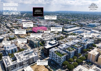 Brand new, modern retail on the street level of newly completed luxury apartment building. Available for a mix of uses including; restaurant, cafe, juice bar, health/wellness/fitness, apparel, and concept shoppes. Spaces feature expansive window line along Lincoln Boulevard and Colorado Avenue. Outdoor patio seating possible. On-site subterranean parking. Shafts and grease interceptor in place for restaurant uses.
