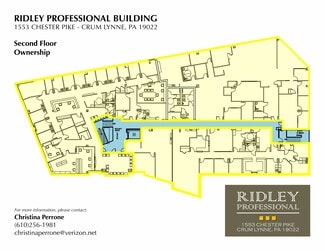 The Ridley Medical Building is privately owned and professionally managed by Christina Perrone, who is known for her hands-on, responsive approach. Tenants consistently cite the property’s cleanliness, safety, and attention to detail. 1553 Chester Pike is an opportunity to own a mission-driven medical asset with immediate usability, long-term stability, and real community impact. With two available medical condo suites from 4,000 to 11,000 square feet, The Ridley Medical Building represents a standout opportunity.