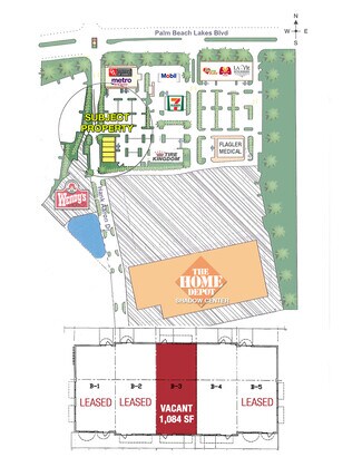 Retail/office space available in a busy, well-established plaza on Palm Beach Lakes Boulevard - one of West Palm Beach's highest-traffic corridors, with over 41,000 vehicles passing daily. This suite offers what most small spaces can't: real signage. Building façade and monument sign positions are available, putting your business name front and center in a busy plaza. The space features an open floor plan that's easy to adapt for a wide range of uses. Shadow-anchored by Home Depot, the plaza draws consistent daily traffic and benefits from strong co-tenancy. Easy access, abundant parking, and proximity to Tanger Outlets Palm Beach, Target, Palm Beach International Airport, and Downtown West Palm Beach round out the location.
