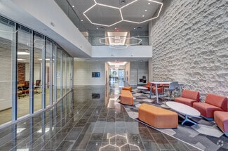 Office building with onsite conference center, indoor and outdoor tenant collaboration areas, as well as a Grab & Go Kiosk.
