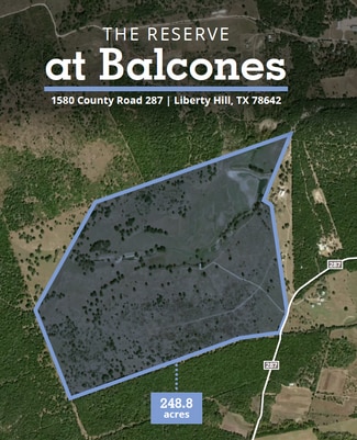 248.8 acres Currently platted as 100 2-acre lots, however, the parcel can be re-platted to 1-acre lots Water to be provided by onsite wells/Onsite capacity equivalent to 400 LUEs Wastewater will be septic Approved MUD in place MUD reimbursables available to purchaser Top-ranked Liberty Hill ISD Contact Broker for pricing