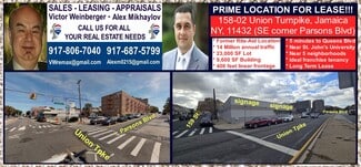 FOR LEASE a Prime Mega retail Corner at 158-02 Union Turnpike, Flushing/Fresh Meadows/Jamaica, NY. (SE corner Parsons Blvd)