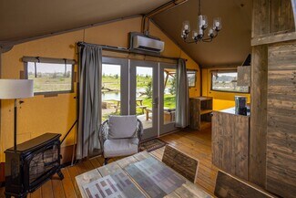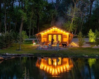 A true Outdoor Adventure Retreat with all of the comforts. The Sankoty Lakes Resort is 230 ACRES with THREE Man-Made Lakes, MILE-LONG Trout Stream, Multiple Ponds, Luxury Canvas Lodging (fully furnished with heat and air), ADA Cabins (fully furnished with heat and air), 3,548 sqft Restaurant (fully furnished/turn key), Laundry/Storage/Garage Facility, RV pull-through sites, Beaches, Riverfront and much more. The beautiful crystal-clear spring waters come from the Sankoty Aquifer with its 52 degree year round temps.. which is the ideal setting for why the waters are stocked with four species of trout, walleye, crappie, etc. A FRY FISHING paradise right here in Central Illinois! Come see the charming Wolly Bugger RESTAURANT with its contemporary rustic appeal Its 9,000 sqft OUTDOOR PATIO offers large firepits, honeycombed wood stacks and rows of rocking chairs for young and old to enjoy. Perfectly centered in the resort, the Wolly Bugger Restaurant is blessed with spectacular views of the lakes and Midwest Sunsets. Don't miss this TURN-KEY PROPERTY with all of the luxuries one would expect.
