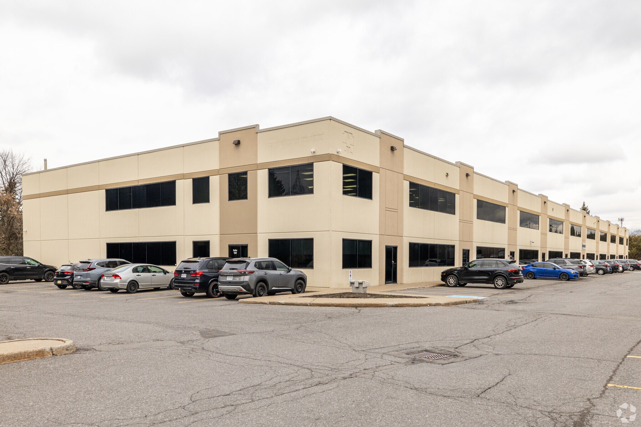 Property has a warehouse clear height 22'4'. Comes with parking spots.