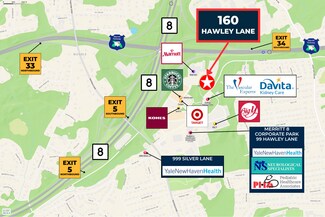 • Prime location less than one mile from Merritt Parkway Exits 33 & 34 and Route 8 with easy access to Route 25