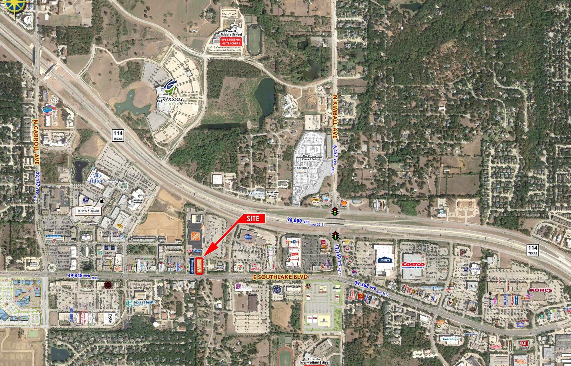 • 86 linear feet of frontage in the heart of the Southlake Blvd corridor