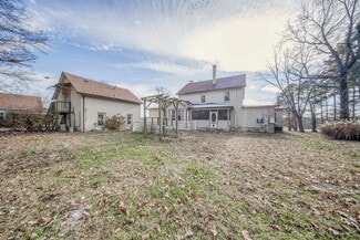 Discover a true Rolla landmark—this 1934 traditional brick home beautifully combines timeless craftsmanship, thoughtful updates, and unique commercial potential. Ideal property for a bed and breakfast or short term rental. Situated on nearly 4 private acres, the property offers both space and convenience, just minutes from downtown Rolla, Missouri S&T, and major highways. The spacious 6 bedroom, 3.5 bathroom layout welcomes you with a chef-inspired kitchen featuring custom cabinetry, granite countertops, a copper apron-front sink, farmhouse-green tile backsplash with a hand-crafted mural of the original homestead, and a generous center island with seating. The formal dining room and richly paneled den—complete with built-ins and a wood-burning fireplace—provide an elegant setting for gatherings. Hardwood floors, solid wood trim, and pocket doors showcase the home’s enduring character. Upstairs offers three sizable bedrooms, while the finished third-floor flex space is perfect for an office, studio, or guest suite. The walkout lower level provides abundant storage and room to expand. Outside, two detached garages totaling five parking spaces include one with a fully finished apartment—ideal for extended family, guests, or rental income. The front portion of the acreage fronts Highway 72 and is commercially zoned, offering an exceptional opportunity for a home business, professional office, or short-term rental. Warm, inviting, and full of possibility, this one-of-a-kind property blends history, acreage, and flexibility—an exceptional find in the heart of Rolla. Schedule your private tour today!