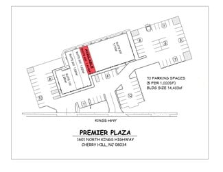 Ideal location for medical office, restaurant or retail users. Located on Kings Hwy near Rt 70 Excellent visibility from Kings Highway (Route 41). Signalized intersection. Dedicated left turn lane. Over 70 parking spaces (5/1000sf) Excellent traffic counts- 33,000 VPD on Kings Highway and 55,000 VPD on Route 70 Situated in the heart of Cherry Hill's shopping district and within 1/4 mile of Whole Foods, Dunkin Donuts, Honeygrow, Qdoba, Wells Fargo, McDonald's, Mom's Organic Market, Metro PCS, Sprint..... Large population- 100,000 within 3 miles and 300,000 within 5 miles High incomes- $122,534 avg annual HH income within 3 miles Brokers welcome Come join - LabCorp, Sangkee Restaurant and Medical Clinic Contact: Tom Dugan at tdugan@duganconstruction.com or 856-778-9455 office