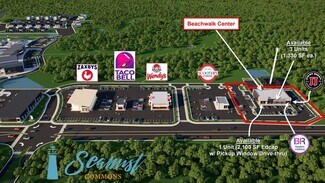 eachwalk Center at Seamist Commons offers a rare opportunity to lease retail space within one of Berkeley County’s most dynamic mixed-use developments. Strategically located at 1601 State Road in Summerville, SC, this ±230,000 SF commercial project is part of a 68-acre master-planned community designed for a “Live, Work, and Play” lifestyle. The site features a lighted intersection and over 1,950 feet of roadway frontage along US Hwy 176, with visibility to 24,000 vehicles per day.