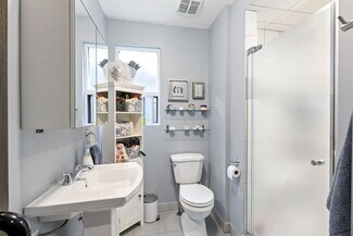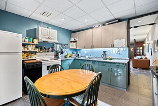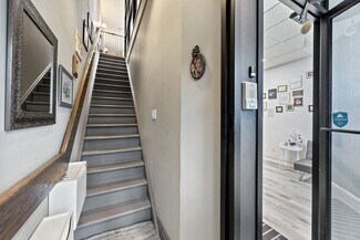 Approx. 1,600 sq ft above grade (700 sf main + 900 sf second floor), plus a full basement. The main floor is move-in ready for a medical, health, or wellness clinic, with treatment rooms, administrative space, and plumbing and electrical already in place. Abundant windows provide a bright, functional workspace. The second floor features a spacious 2-bedroom apartment with full kitchen, 4-piece bath, two large rooms, and a striking square skylight—perfect for residential rental income. A private second-storey deck with custom stairs leads to a serene backyard, offering added privacy and outdoor living space.
