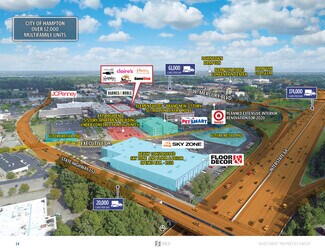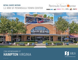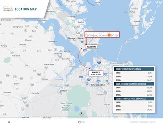 The site is well-located at the intersection of Interstate 64 and Mercury Boulevard, the primary east/west thoroughfare through the Hampton Roads market. It is located within close proximity to the Langley Air Base and NASA Langley Research Center, which employs over 16,000 professionals and are central locations within the defense-driven Hampton economy. In addition, the site is well-located within close proximity to the Hampton Coliseum, Hampton Roads Convention Center, and Boo Williams Sportplex youth sports complex, with a combined 1,000,000+ annual visitors. The Shops at Peninsula Town Center draws from a broad 5-mile trade area featuring a population over 200,000 residents, more than 124,000 employees and an average household income exceeding $67,000. Peninsula Town Center sits in the heart of the trade area and has seen over 6.6 million visits in the last 12 months, demonstrating a high volume of traffic to the center.