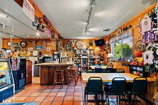 The garage: has a large walk-in freezer box & storage for all store products & food. Offers a large storage building w/ storage expansion opportunity. Ample space for RV's, boats, trailers, & more! Tourists are attracted to the building all year round & often stop for the attractive patio dining.