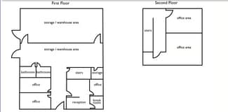 • It includes a break room, multiple office spaces, and a substantial open office area on the second floor.